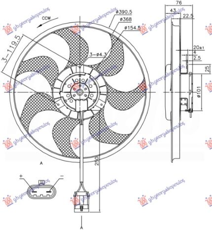 €127.95ΒΕΝΤΙΛΑΤΕΡ ΨΥΓΕΙΟΥ ΚΟΜΠΛΕ (ΜΟΝΟ) 1.2 ΒΕΝΖΙΝΗ – 1.5-1.6 ΠΕΤΡΕΛΑΙΟ – ELECTRIC (428mm) (2 pins) (250W)
