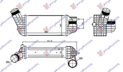 ΨΥΓΕΙΟ INTERCOOLER 2.0 HDI-BlueHDI ΠΕΤΡΕΛΑΙΟ (300x147x76) ΠΑΡΟΧΕΣ Φ 60/60-CITROEN DS4 11-15