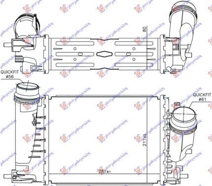 ΨΥΓΕΙΟ INTERCOOLER 1.6 TCE ΒΕΝΖΙΝΗ – 1.6 DCI ΠΕΤΡΕΛΑΙΟ AYTOMATO (281x217x80)