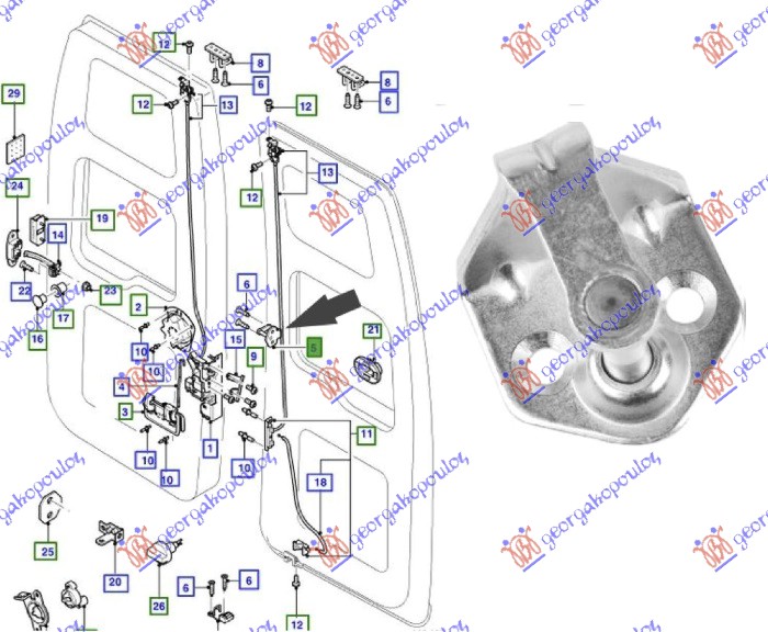 ΚΛΕΙΔΑΡΙΑ ΣΤΑΘΕΡΗ ΠΟΡΤΑΣ ΠΙΣΩ ΔΙΠΛΗΣ ΚΕΝΤΡΟ (ΓΑΝΤΖΟΣ)-FORD TRANSIT CONNECT 10-13