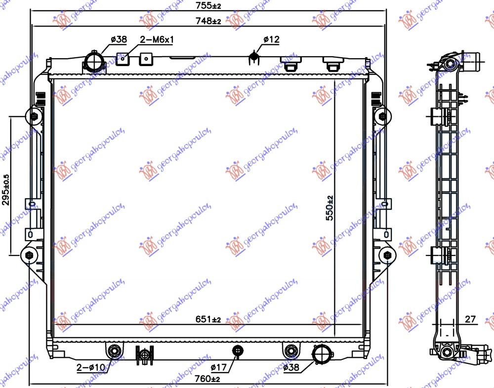 ΨΥΓΕΙΟ ΝΕΡΟΥ 2.4/2.8 D ΠΕΤΡΕΛΑΙΟ ΑΥΤΟΜΑΤΟ (550x650x27) – TOYOTA HI-LUX 2WD/4WD 15-20 – 164000L361