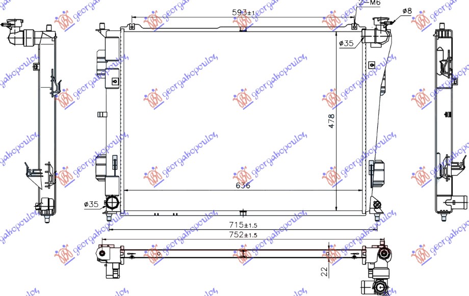 ΨΥΓΕΙΟ ΝΕΡΟΥ 2.0-2.4 ΜΗΧΑΝΙΚΟ ΒΕΝΖΙΝΗ (635x480x16) – HYUNDAI SONATA 11-15 – 253103S050