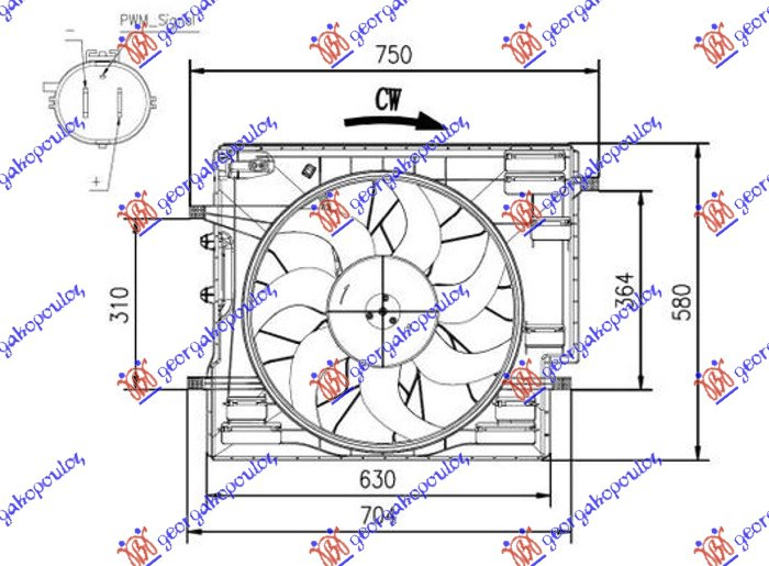 ΒΕΝΤΙΛΑΤΕΡ ΨΥΓΕΙΟΥ ΝΕΡΟΥ ΚΟΜΠΛΕ 2.0 Τ5-Τ6-Τ8 HYBRID PETROL-VOLVO XC90 20-