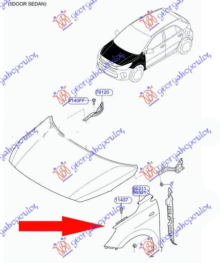 ΦΤΕΡΟ ΕΜΠΡΟΣ (ΧΩΡΙΣ ΤΡΥΠΑ ΦΛΑΣ) ΑΡ - KIA RIO Η/Β 17-20 - 66311-H8000 €80.89