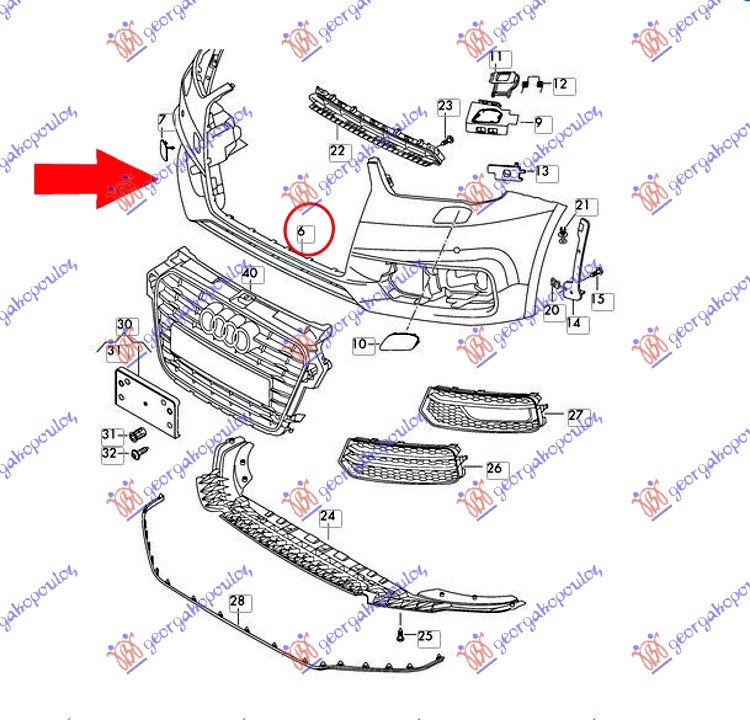 ΠΡΟΦΥΛΑΚΤΗΡΑΣ ΕΜΠΡΟΣ ΒΑΦΟΜΕΝΟΣ (ΜΕ PDS & ΠΙΤΣΙΛΙΣΤΗΡΙΑ) – AUDI A1 14-18 – 8XA807065CGRU