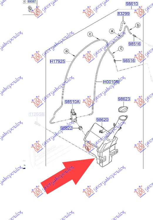 ΔΟΧΕΙΟ ΝΕΡΟΥ ΥΑΛΟΚΑΘΑΡΙΣΤΗΡΩΝ (ΜΕ ΠΙΣΩ ΥΑΛΟΚΑΘΑΡΙΣΤΗΡΑ) (ΚΟΜΠΛΕ) (Γ)-HYUNDAI i20 18-20