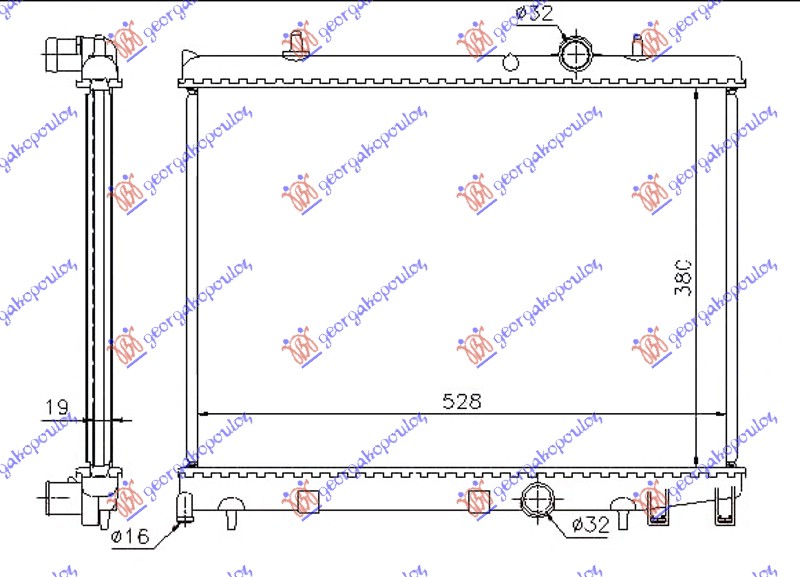 ΨΥΓΕΙΟ ΝΕΡΟΥ 1.6 HDi ΠΕΤΡΕΛΑΙΟ (380x540x16) ΚΙΝΗΤΗΡΑΣ DV6TED4 – PEUGEOT 206 98-09 – 96483977