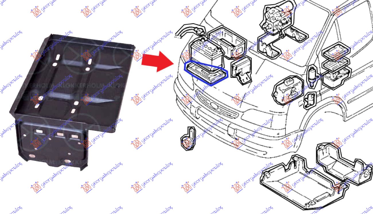 ΒΑΣΗ ΜΠΑΤΑΡΙΑΣ ΒΕΝΖΙΝΗ-FORD TRANSIT 95-00